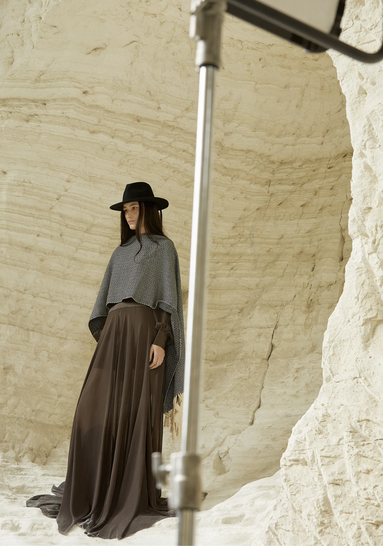 Saravia is known for her minimalist tailoring and for integrating Mexican cultural references into contemporary fashion. She transforms cultural references into a design language that adapts seamlessly to global fashion while retaining a distinctly Mexican perspective. In this collection, traditional techniques are reinterpreted into structured silhouettes and everyday pieces.